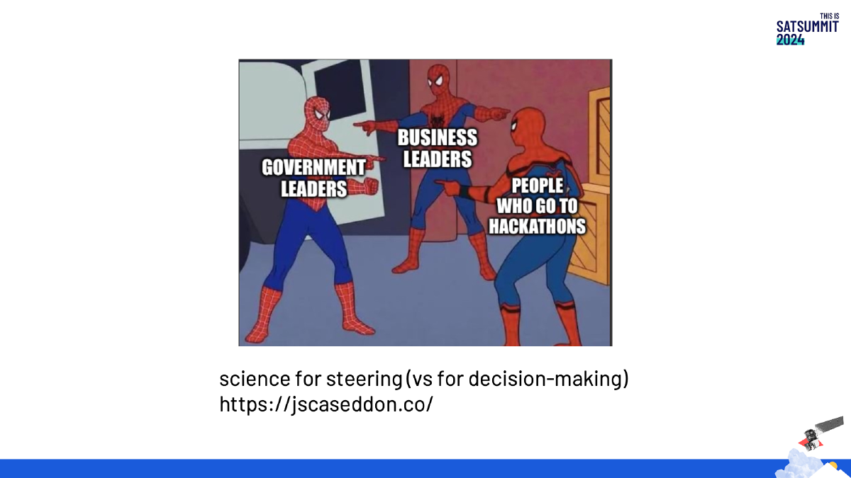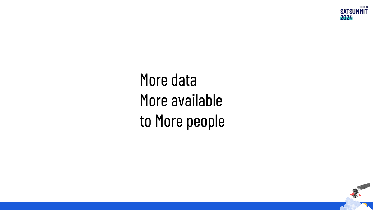 I’m not trying to make any claims about whether this is good or bad. I’m just saying that the creation of data isn’t something we’re worried about. I mean, heck! The “great debate” at this event is whether or not the “humanitarian community should own and operate its own satellites.” Imagine traveling back to 2015 and proposing such a thing at the first SatSummit. It would have been ludicrous.